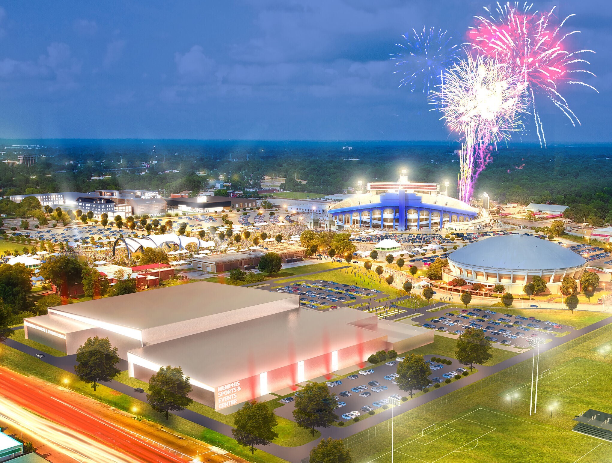 Memphis Sports and Events Center (MSEC) is a 227,000 square foot, state-of-the-art facility featuring 16 basketball courts under one roof. Located within Liberty Park, other amenities include a full-service cafe, sports performance area, esports studio, kids entertainment zone and more. The MSEC was designed to drive local programming during the week while supporting sports tourism (via tournaments and special events) on the weekends.