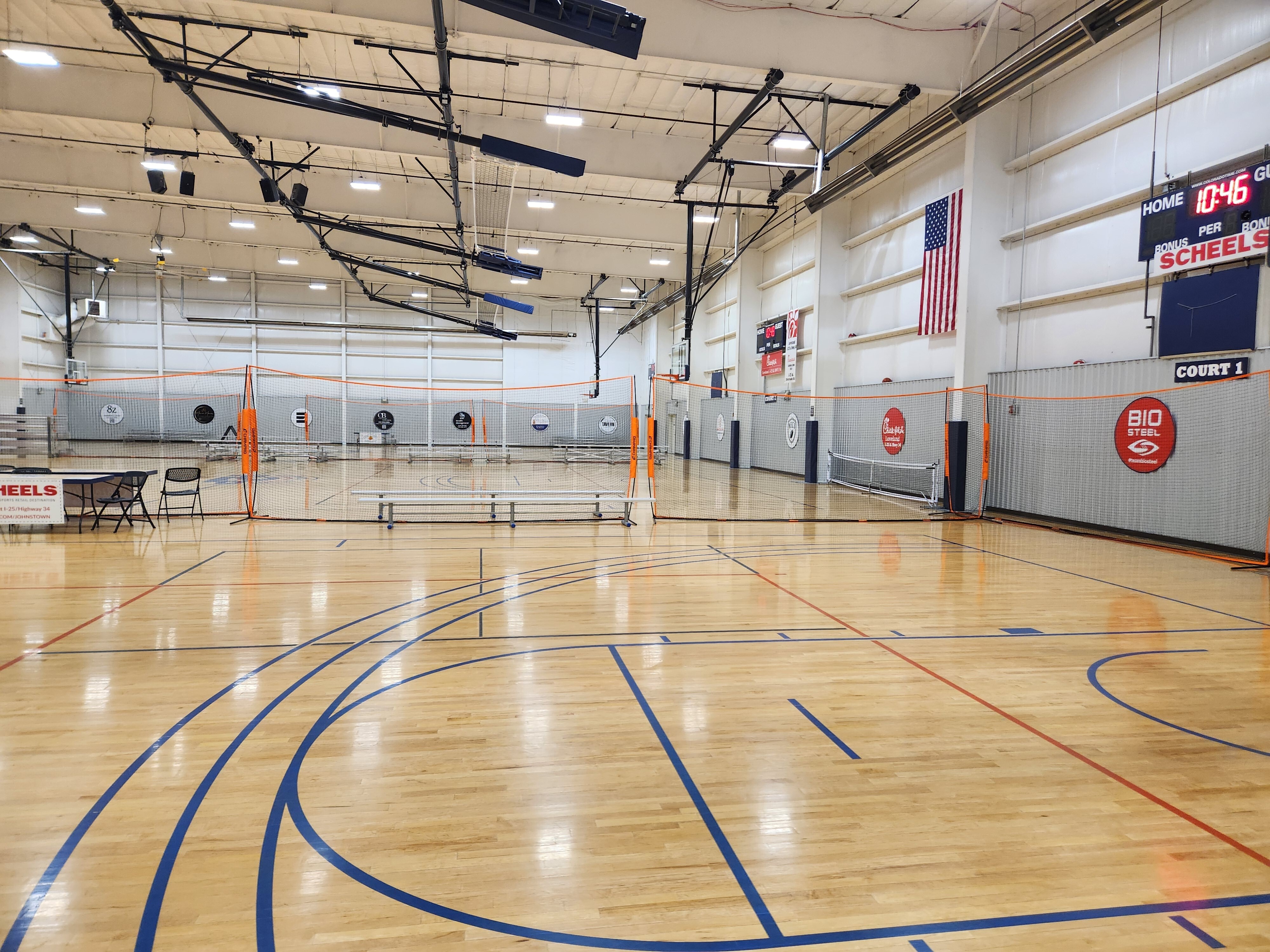 The NOCO Sports Center is the premier indoor sports facility in The Rocky Mountain Region. It specializes in providing the ultimate guest experience for those who participate at the facility. The NOCO Sports Center features 6 Hardwood College Sized Regulation Basketball Courts, 6 Hardwood Regulation Volleyball Courts, 12 Hardwood Pickleball Courts, and a 54,000 Sq. Feet Events Center