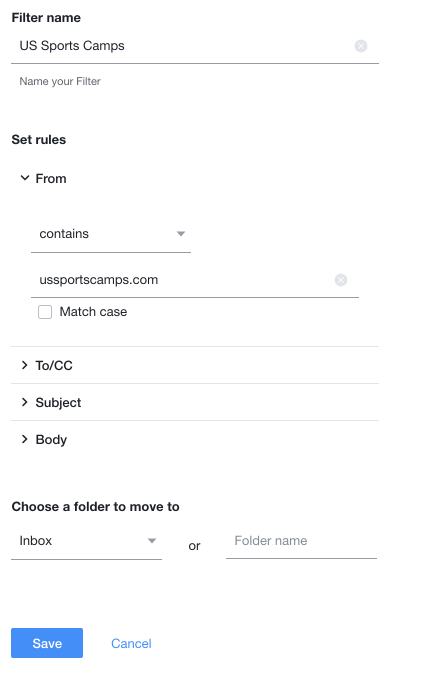 - - Create a name such as US Sports Camps in the Filter name field.
